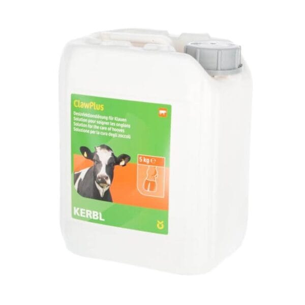 Dezinfectantul concentrat pentru copite Clawplus, marca Kerbl, este destinat utilizarii profilactice pentru intretinerea unghiilor la bovine, ovine si caprine. Produsul poate fi aplicat atat sub forma de baie de unghii, cat si ca spray direct, asigurand o ingrijire eficienta si regenerarea copitelor.